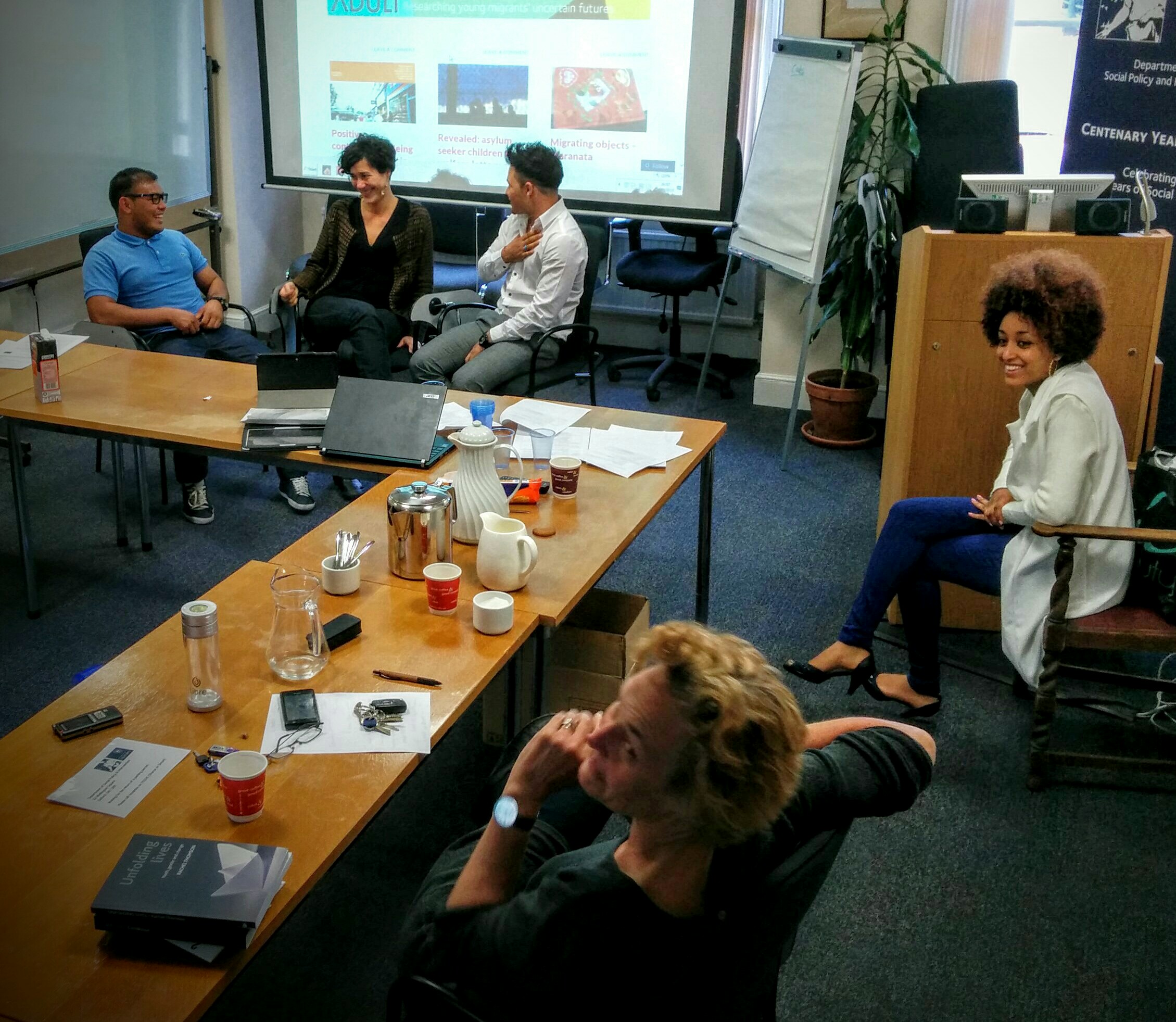 With no prompt , the conversations began with reflections and experiences of passing through the jungle in Calais –of friendships and conflicts; of care and hostility; being young; being a woman – a man; how you share what you know – what advice we should give others who say they want to make the same journey. The basement of an Oxford University department seems an unlikely space for such ‘story’ telling but here, over a delicious lunch of Middle Eastern food and with much laughter and some joshing , we talked about serious things and began to unpick the dilemmas of research from the positions we are in now.